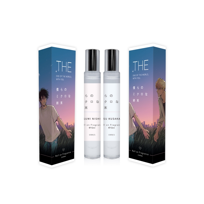 巨大隕石の落下により地球滅亡まで残り10日の世界で、互いに惹かれ合う恋の痛みを抱えた2人の香りがセットになったロールオンフレグランスです。