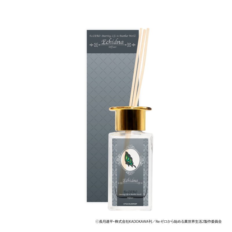 エキドナをイメージしたディフューザーは、フローラルフルーティーの柔らかい香りです。エキドナにスバルが招待された「茶会」での香りをイメージしています。