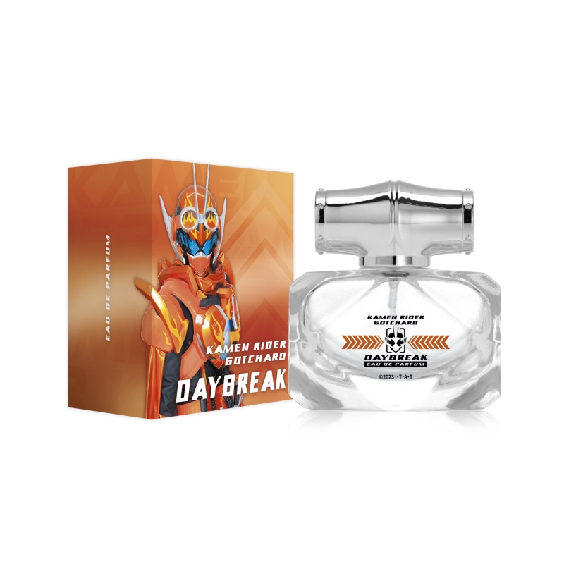 クールでエネルギッシュなシトラスノートが広がるトップノートは、冷静沈着で物静かですが、熱い正義感と優しさを兼ね備えたデイブレイクの戦士としての姿を感じます。エレガントなコンテンポラリーを感じるミドルノートは、未来を取り戻すために戦う2人のガッチャードが重なるようです。マスキュリンノートが持続する魅惑的なラストノートは、自分が経験した最悪な未来を回避するために過去の自分を導くために未来からやってきた一ノ瀬宝太郎の仮面ライダーとしての使命を感じます。