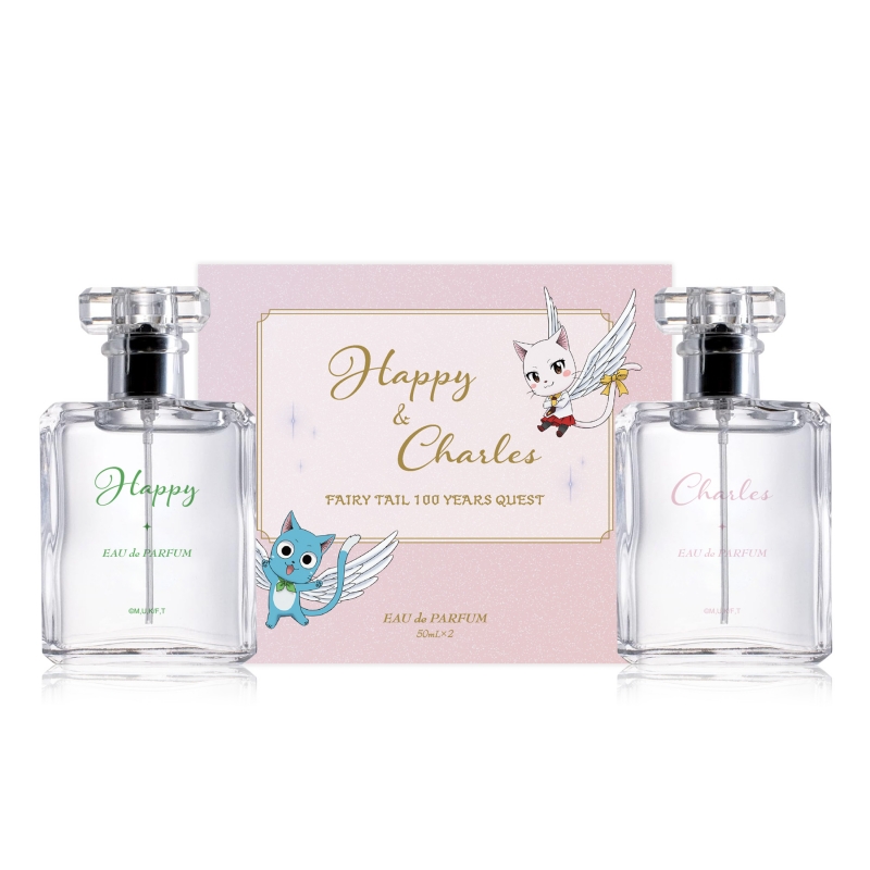 ナツの相棒のエクシード・ハッピーをイメージした香水です。新鮮な果実が爽やかに香るトップノートからウォータリーノートが加わり、更に爽やかな香りになり爽やかさを残しながらふんわりとした香りが持続するラストノートに変化します。
