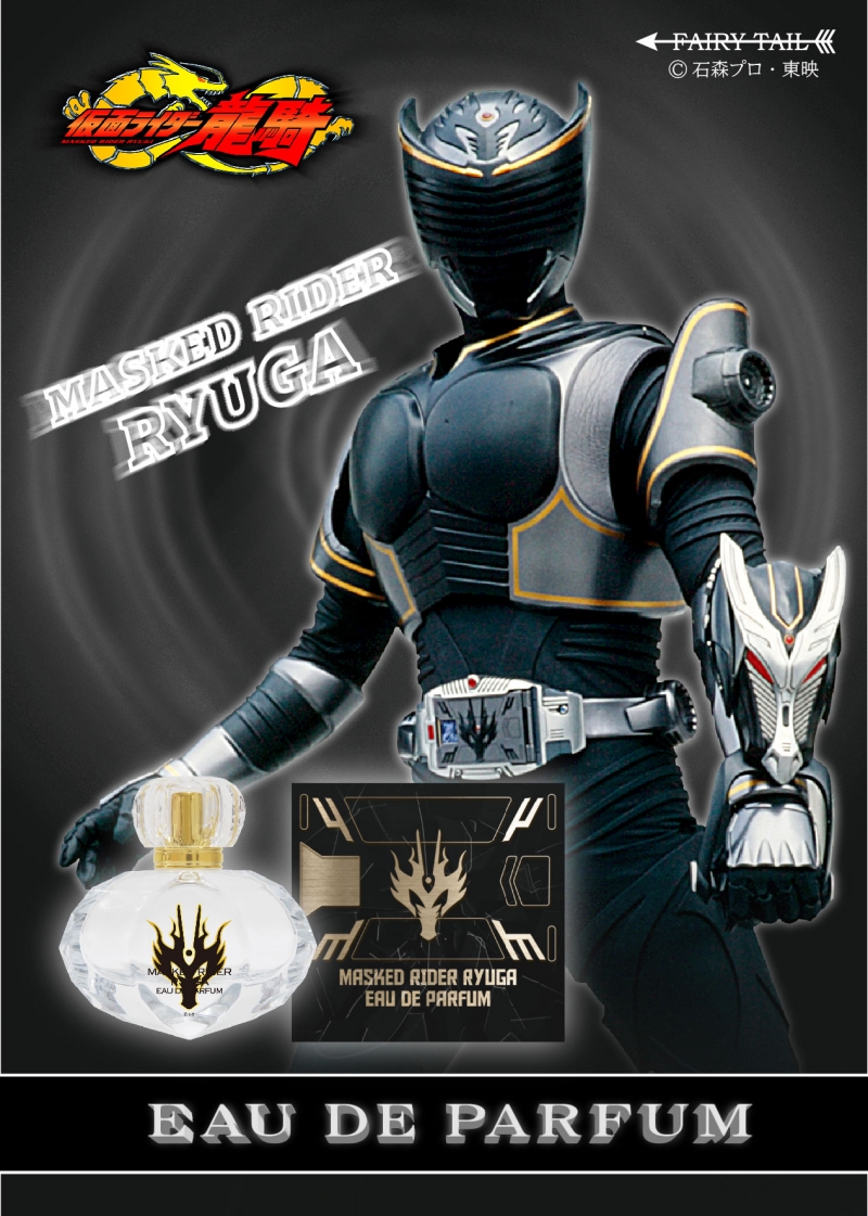 鏡像の城戸真司が変身する“ミラーワールドのライダー”仮面ライダーリュウガをイメージした香水です。官能的なベールに包み込まれるようなトップノートは、瓜二つの存在の現実世界の真司とは正反対に邪悪にして寡黙で好戦的な性格のリュウガを彷彿とさせます。まさに真司の影の香りです。エキゾチックなタイガーオーキッドとセンシュアルなティーローズが融合するミドルノートは、機転を利かせながら我武者羅に戦う龍騎に対して合理的で最低限の動きで戦うリュウガの戦闘スタイルが思い浮かびます。ウッディノートがアクセントを与え、より濃厚な香りに変化するラストノートはドラグブラッカーから黒炎を放射し、暗黒の業炎をまとうリュウガのファイナルベントがイメージできます。