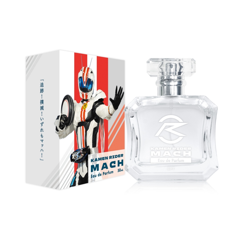 ワイルドで魅惑的な香りが広がるミドルノートはもう1人の仮面ライダーである進ノ介と少しずつに深まっていく信頼関係と、心の底に芽生えてきたチェイスとの友情が垣間見えます。優雅なムスキーノートが広がり、心地よい甘い香りが持続するラストノートはチェイスとの間に芽生えていた友情を胸に、仮面ライダーチェイサーマッハへ奇跡の変身を遂げる剛の姿が思い浮かびます。